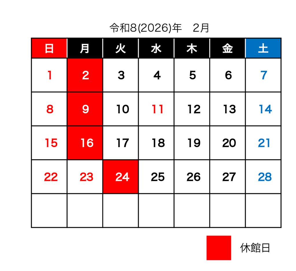 令和8年2月の休館日は以下の通りです。